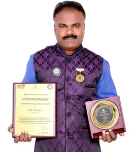 Award presented by Dazzling Awards 2020 vellore. Dr.S. Yobudass receives award and certificate by JANANI IYER Actress, program held on 29/11/2020 sunday at BABY MAHAL, Chief guest were Vijay Tv Gopinath, Dr.BALAJI Trustee Founder, Sri.Narayani, Vellore, AKS.PDG.Rtn.K.JAWARILAL JAIN Chairman Ambalal Group of Company, Mr.P.KARTHIKEYAN MLA Vellore Constituency.